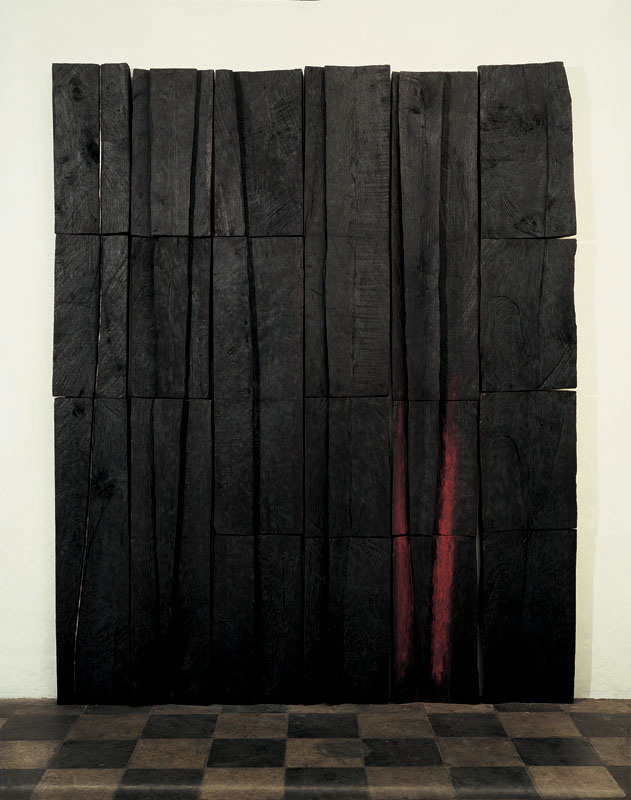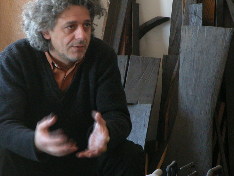 Nunzio. Si è vero, a me piace lavorare con questi materiali grezzi e abbastanza semplici. Uso anche il piombo e a volte la ruggine, anche se devo dire che ho iniziato con il gesso che invece è bianco… Comunque, diciamo che io sono la parte scura del Mediterraneo, quella più nera, che deriva da un archetipo primordiale. In fondo io brucio il legno per togliere tutta l’estetica naturale del materiale e farlo diventare il suo fossile, la sua anima: rimane lo stesso ma con un altro aspetto, il più essenziale.