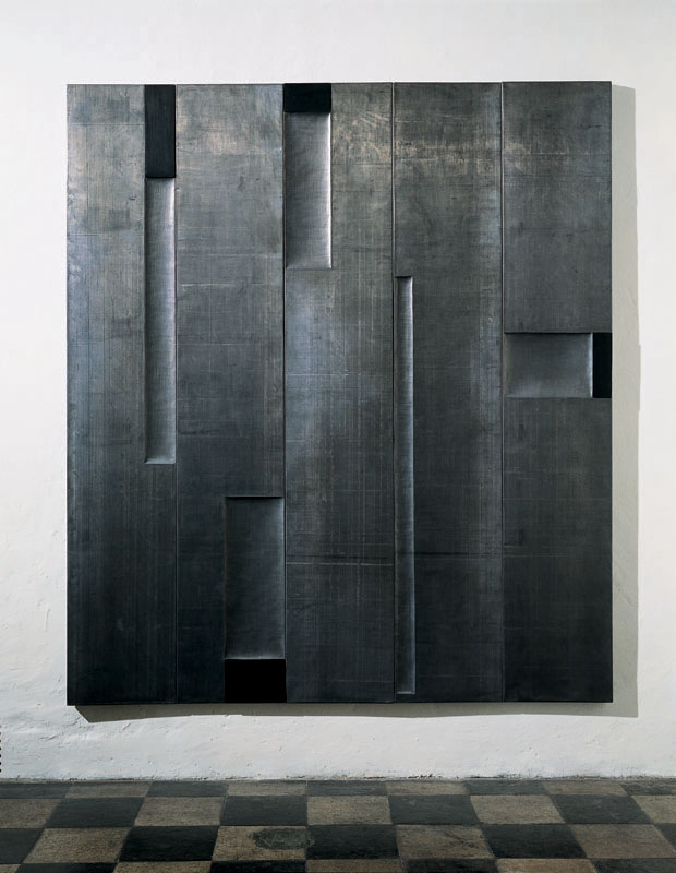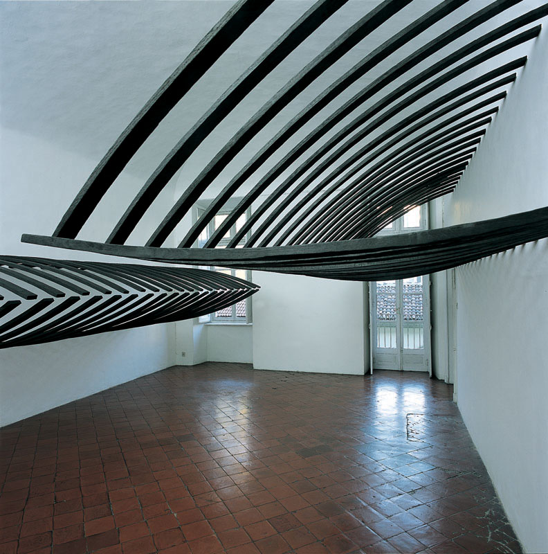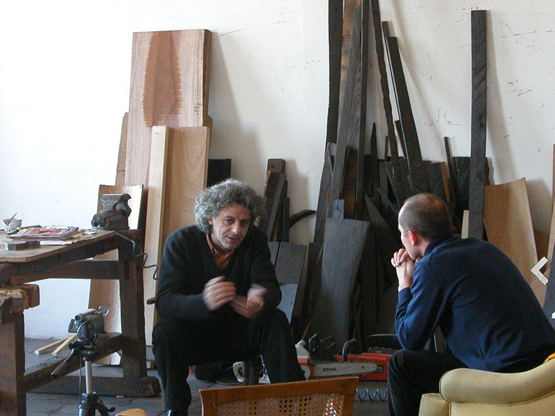 Nunzio. Proprio così ! I ragazzi si sono ispirati a questa mia opera che era una superficie molto plastica di legni bruciati forse perché pensavano alla guerra, e dopo un po di tempo mi hanno portato il progetto per sapere che ne pensavo. Io all’inizio non sapevo come reagire anche perchéero all’insaputa di tutto! Siccome poi sono stati molto gentili, e anche molto modesti ho deciso di aiutarli e abbiamo fatto un plastico assieme. Il rapporto che abbiamo instaurato è stato abbastanza interessante perché riconoscevano in pieno i mio contributo. Questo lo dico perché normalmente gli architetti non lo fanno mai! Usando gli stessi strumenti gli artisti e gli architetti guardano allo stesso problema con occhi del tutto diversi e ahimè per un artista l’approccio dell’architetto è sempre gratuito e velleitario, per un architetto viceversa quello dell’artista è sempre…