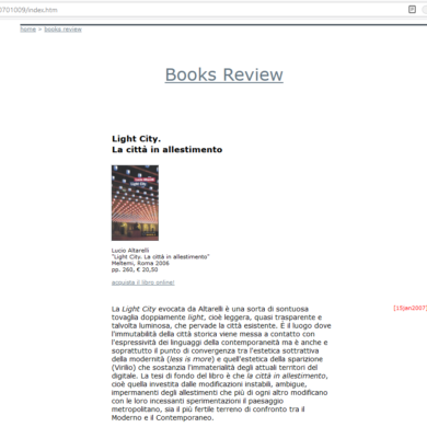 La Light City evocata da Altarelli è una sorta di sontuosa tovaglia doppiamente light, cioè leggera, quasi trasparente e talvolta...
